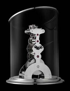 L a dernière née de la manufacture l’Épée est une pendulette en édition numérotée, dont le mouve-ment squelette mécanique 8 jours à 8 rubis est un plaisir pour les yeux comme pour les oreilles. La ligne épurée de son échappement hori-zontal, comme le léger tic tac qu’il émet pour égrainer le temps, en font un bel