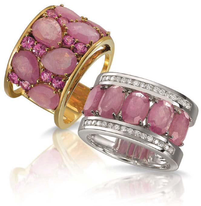 Le résultat est une ravissante collec-tion à un prix plus qu’attractif : non taillées, ou largement facettées, les pierres sont moins exigeantes mais tout aussi précieuses. A partir de 2450 € pour un anneau de 5 poires rubis, agrémenté de saphirs roses, ou 5 rubis ovales sur or blanc. Les saphirs bruts, ou chargés de vie, non taillés et polis procurent les mêmes émotions.