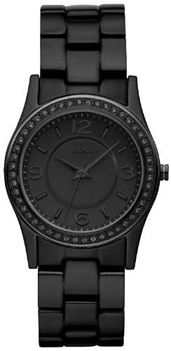 Montre analogique 3 aiguilles, boîtier rond en acier inoxydable poli plaqué noir, cadran noir avec cristaux noirs 149 €