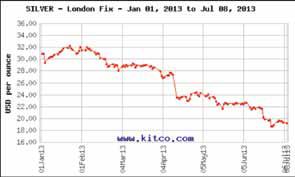 Le cours de l’argent de janvier à juillet 2013. En $ par once. Le cours du palladium de janvier à juillet 2013. En $ par once.