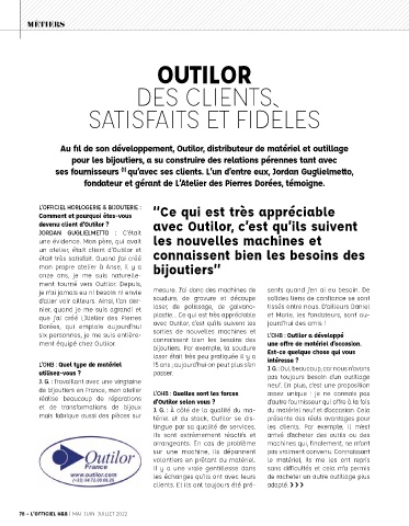 et de transformations de bijoux J. G. : À côté de la qualité du ma- du matériel neuf et d’occasion. Cela